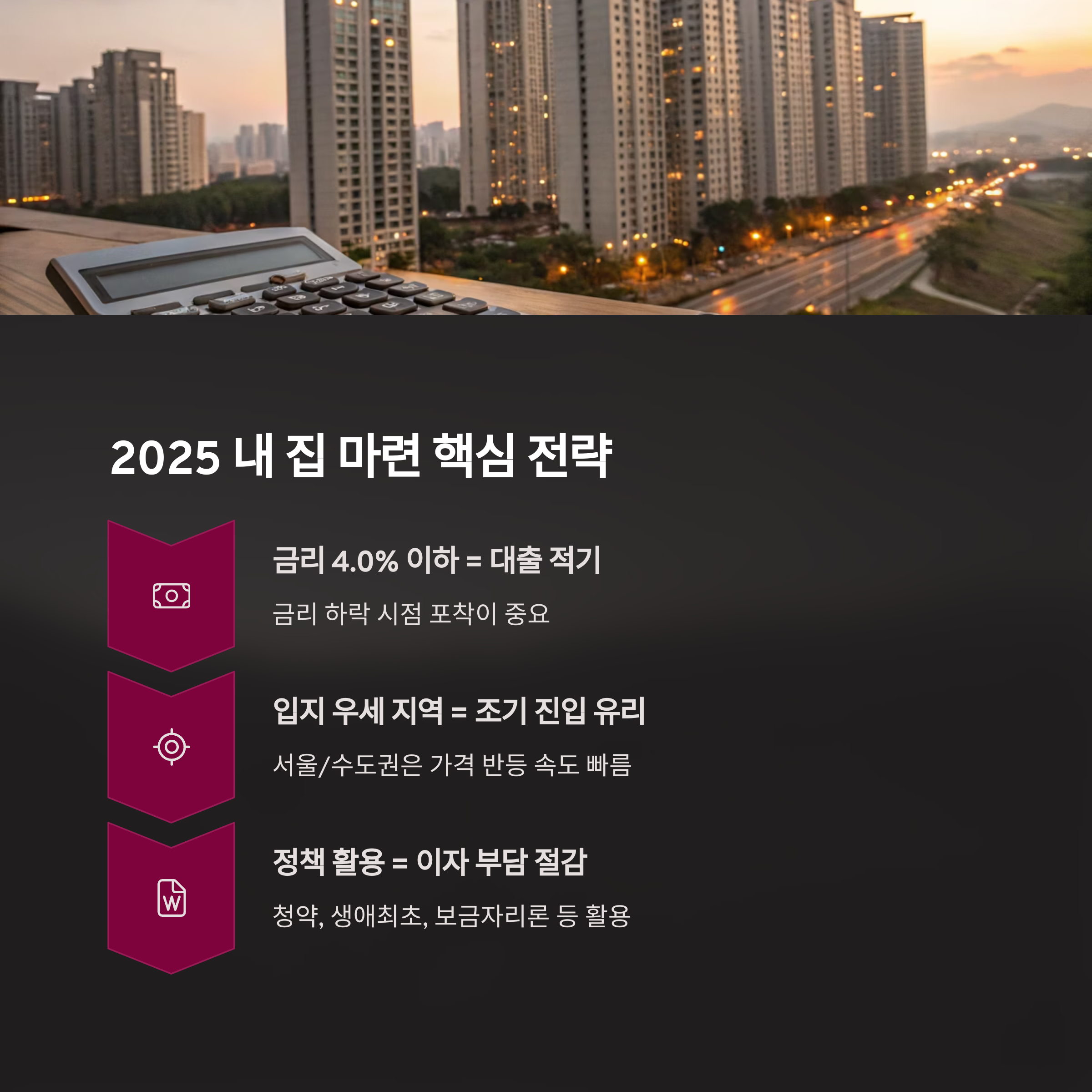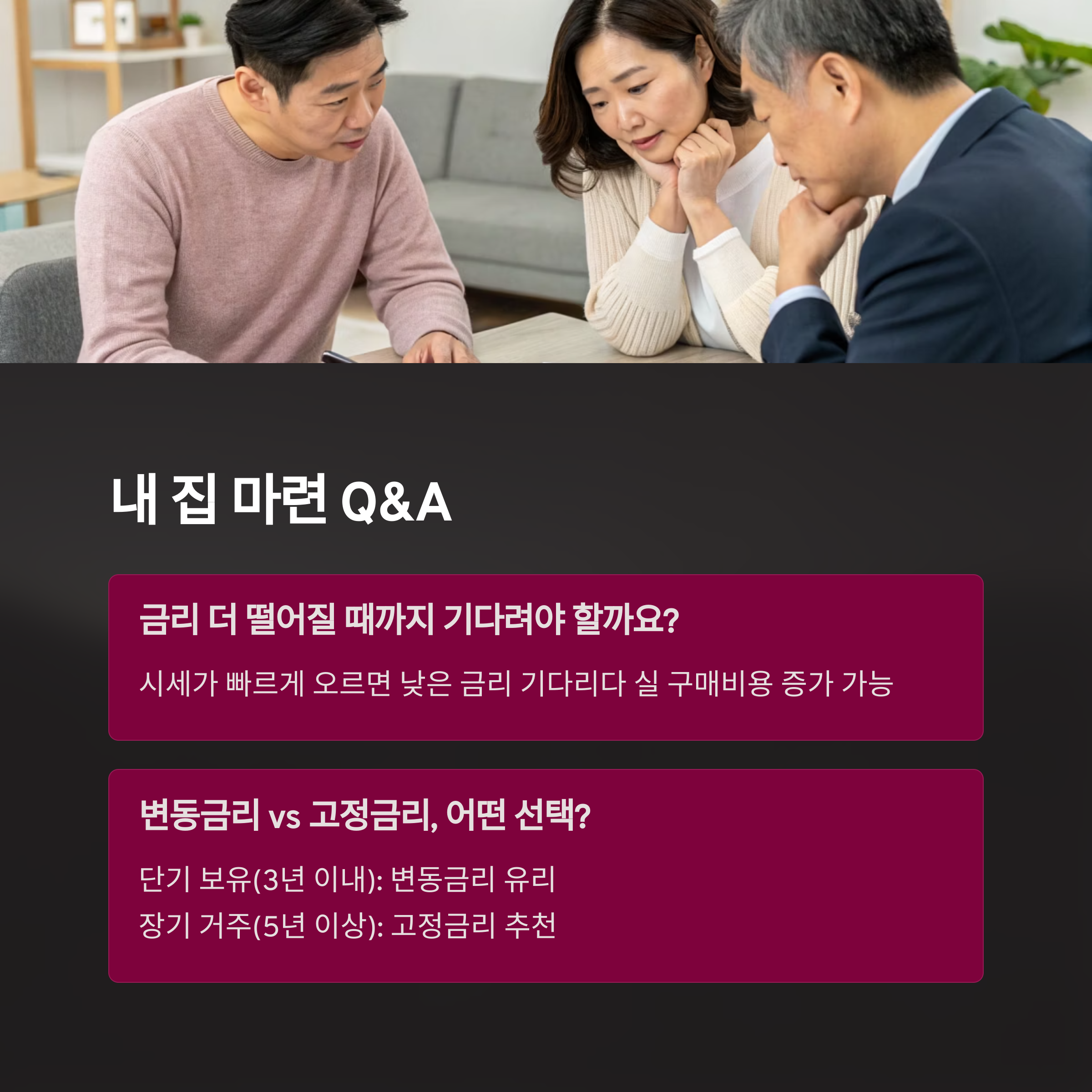 대출 금리만 볼 게 아니라, 내 상황에 맞는 정책 상품 및 구매 타이밍을 종합적으로 따져야 최적의 결정을 할 수 있습니다.