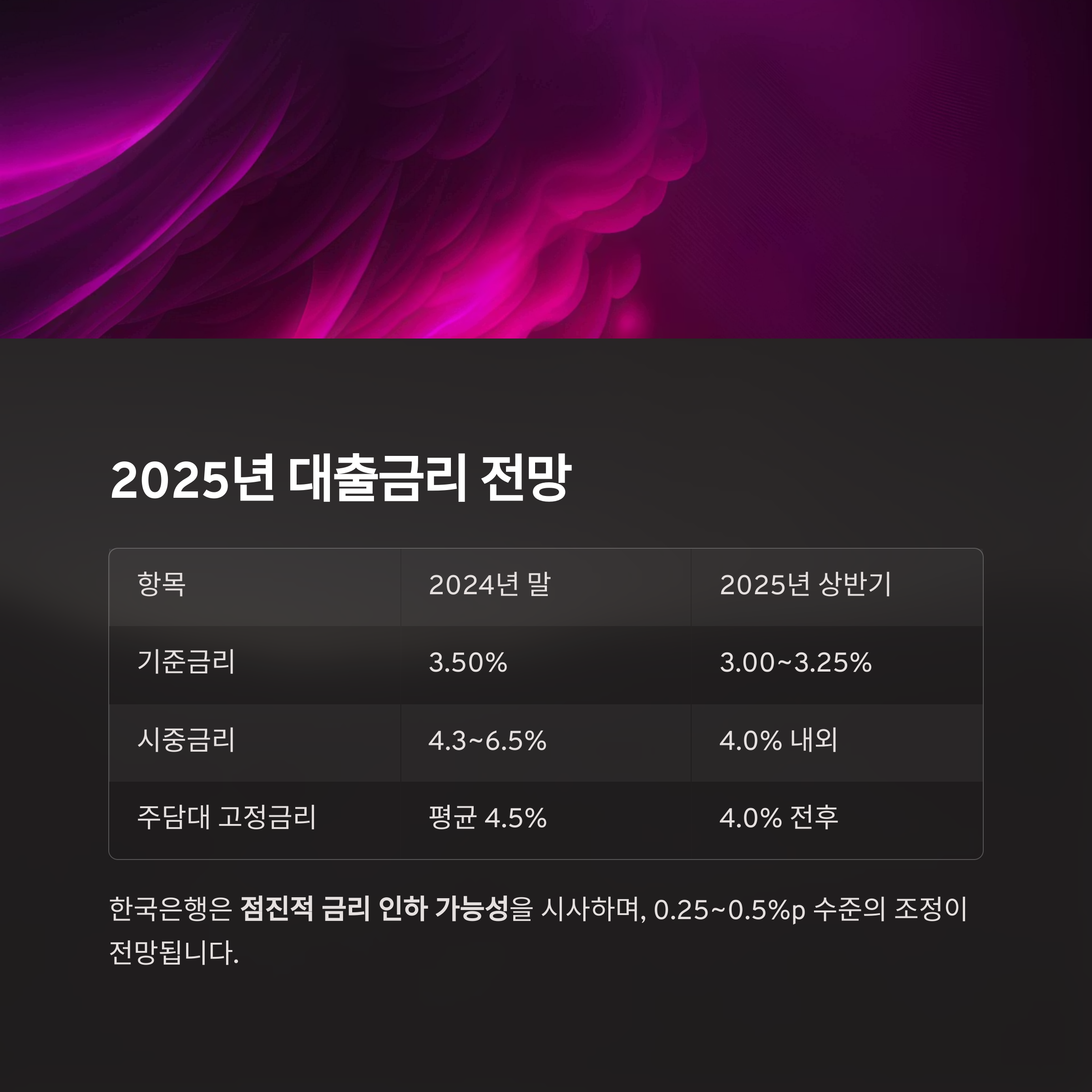 2025년 부동산 시장의 핵심 변수 중 하나는 대출금리의 향방입니다.