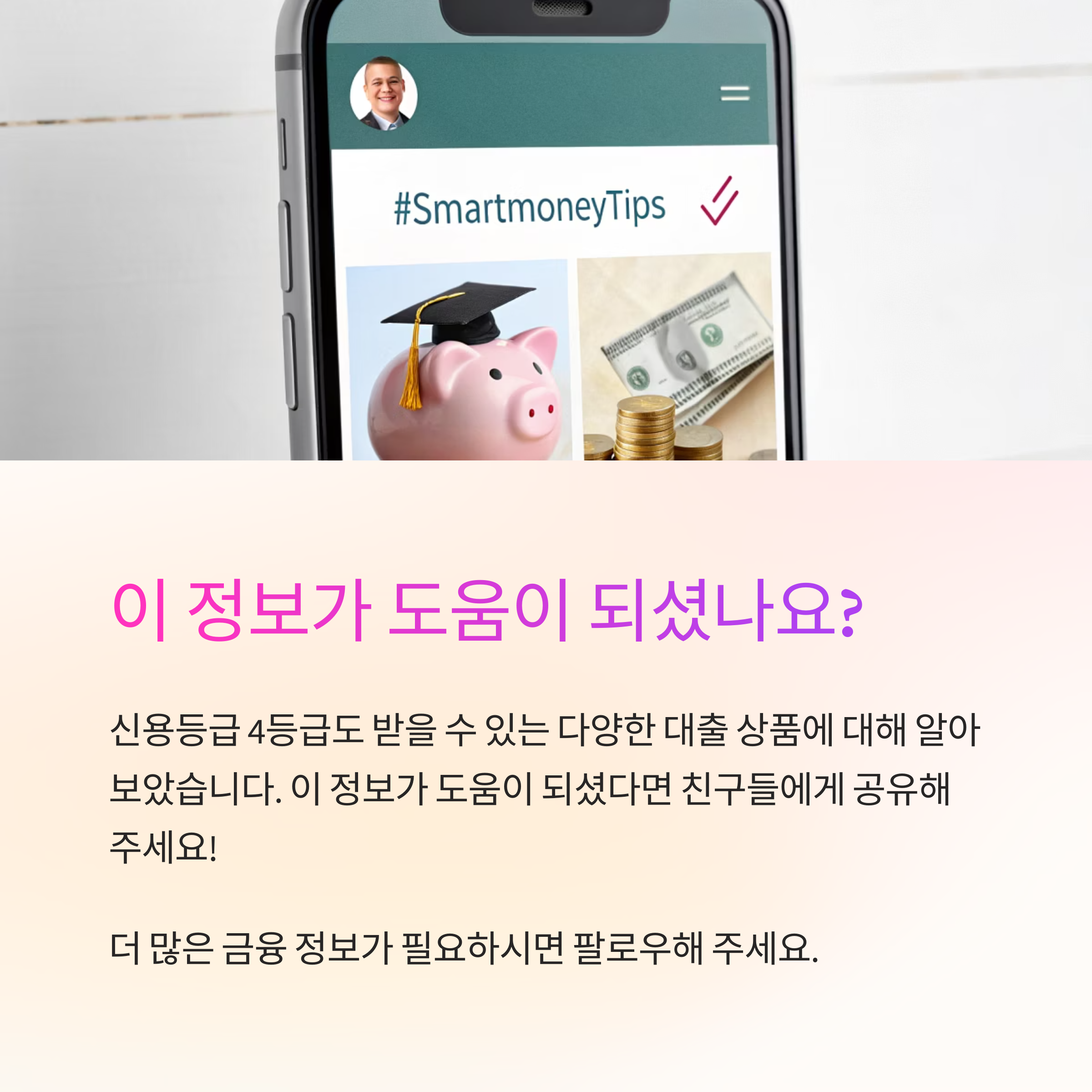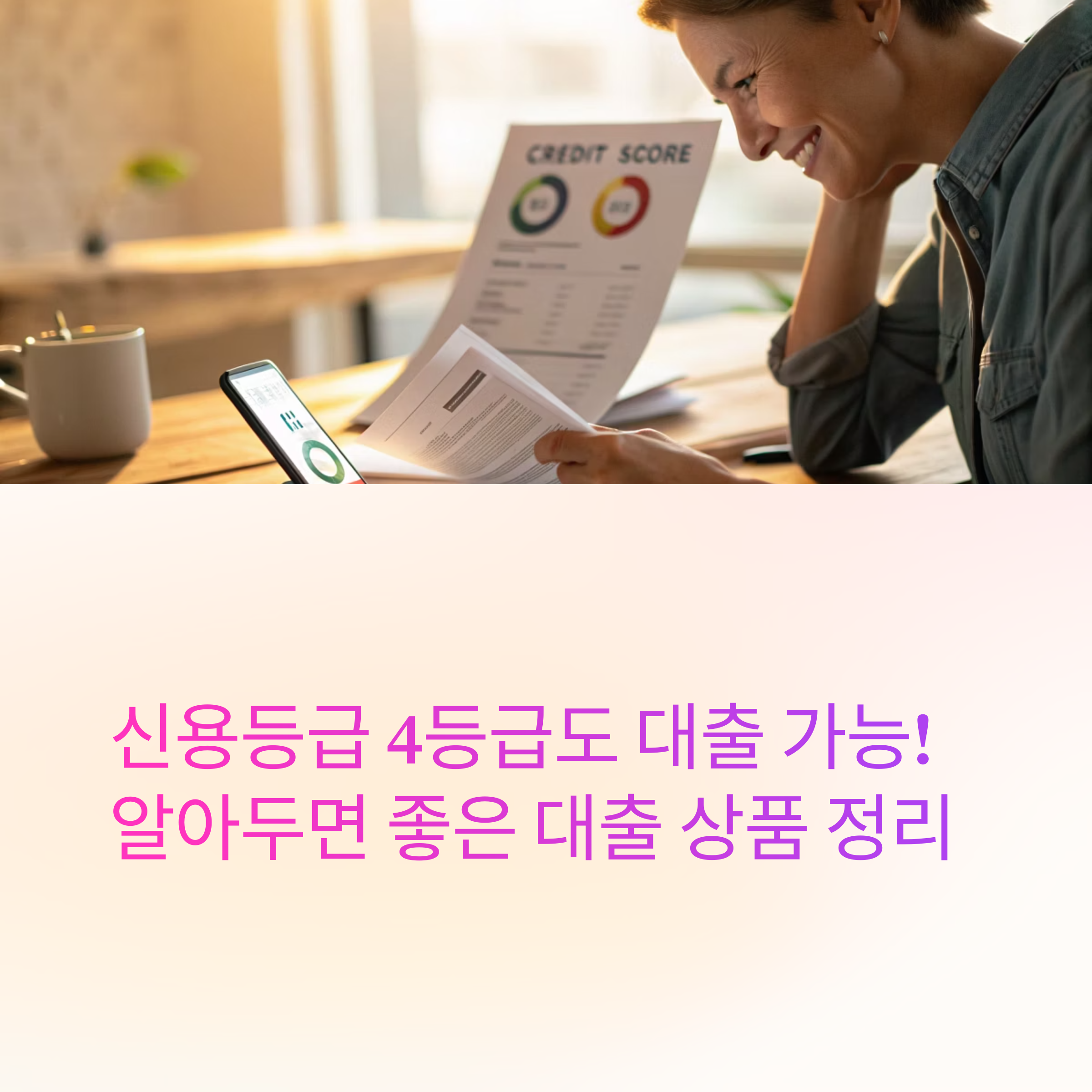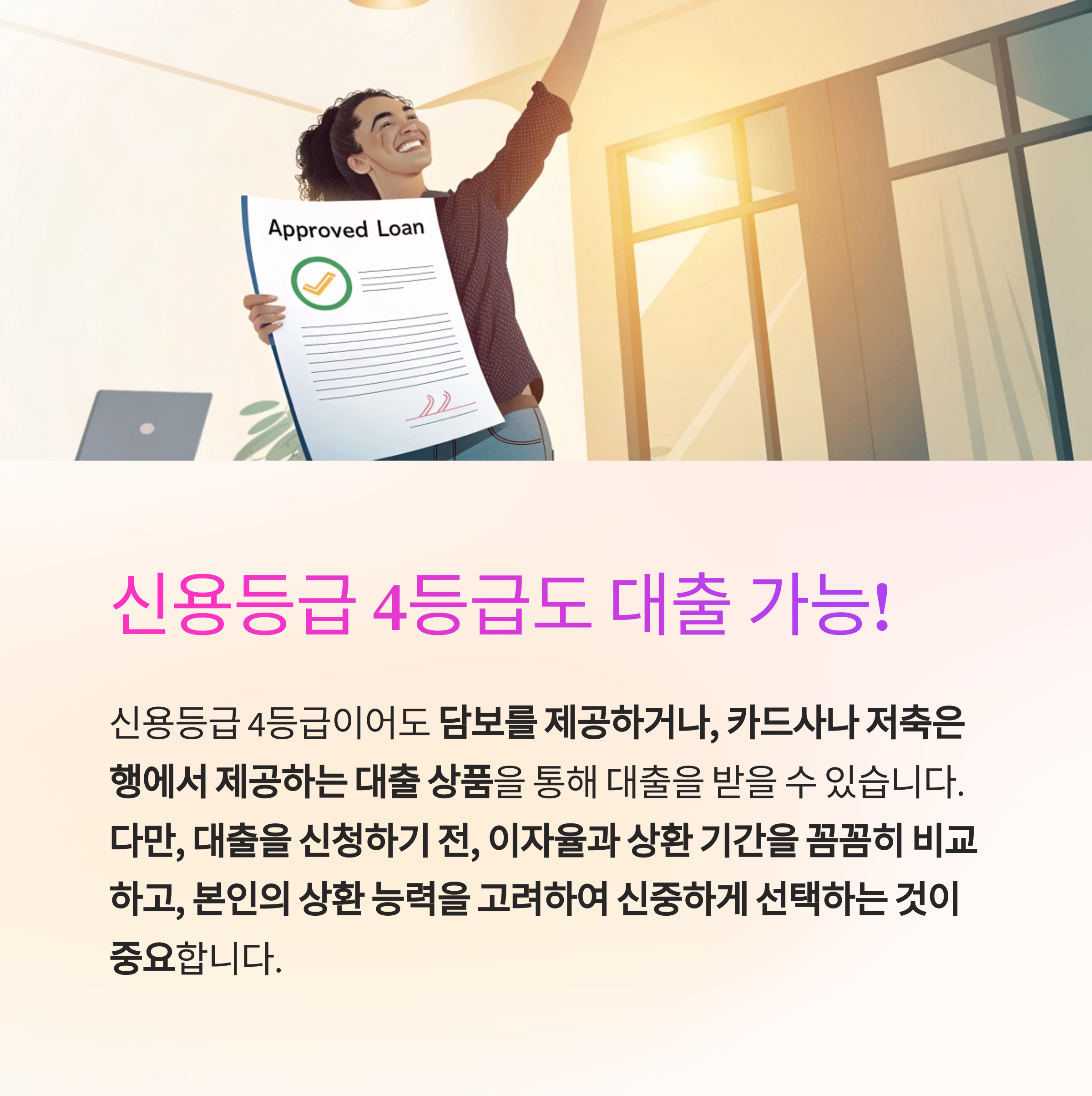 - 대출 가능성: 신용등급 4등급에서도 대출 가능