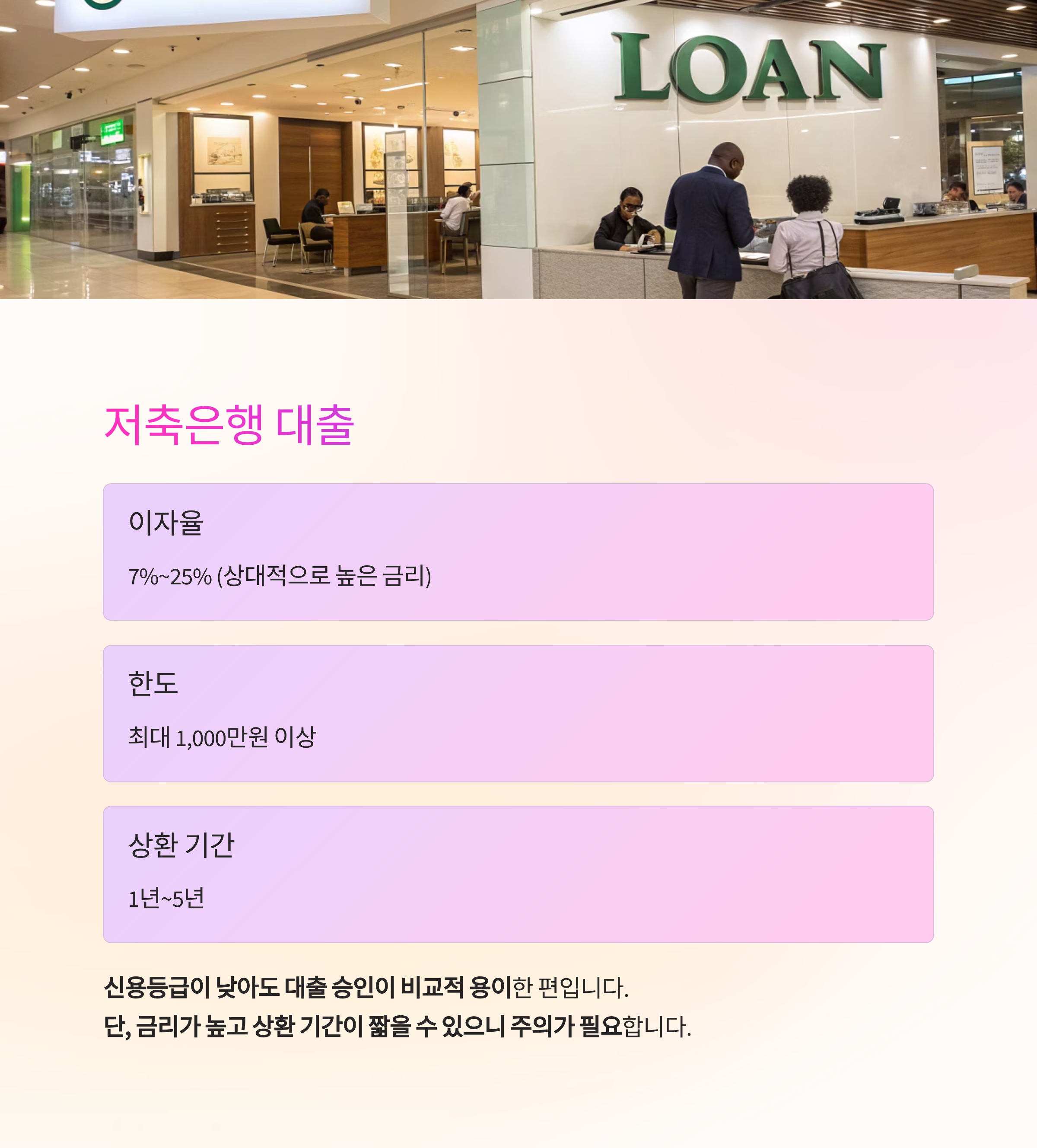 저축은행은 신용등급이 낮아도 대출 승인이 비교적 용이한 편입니다.