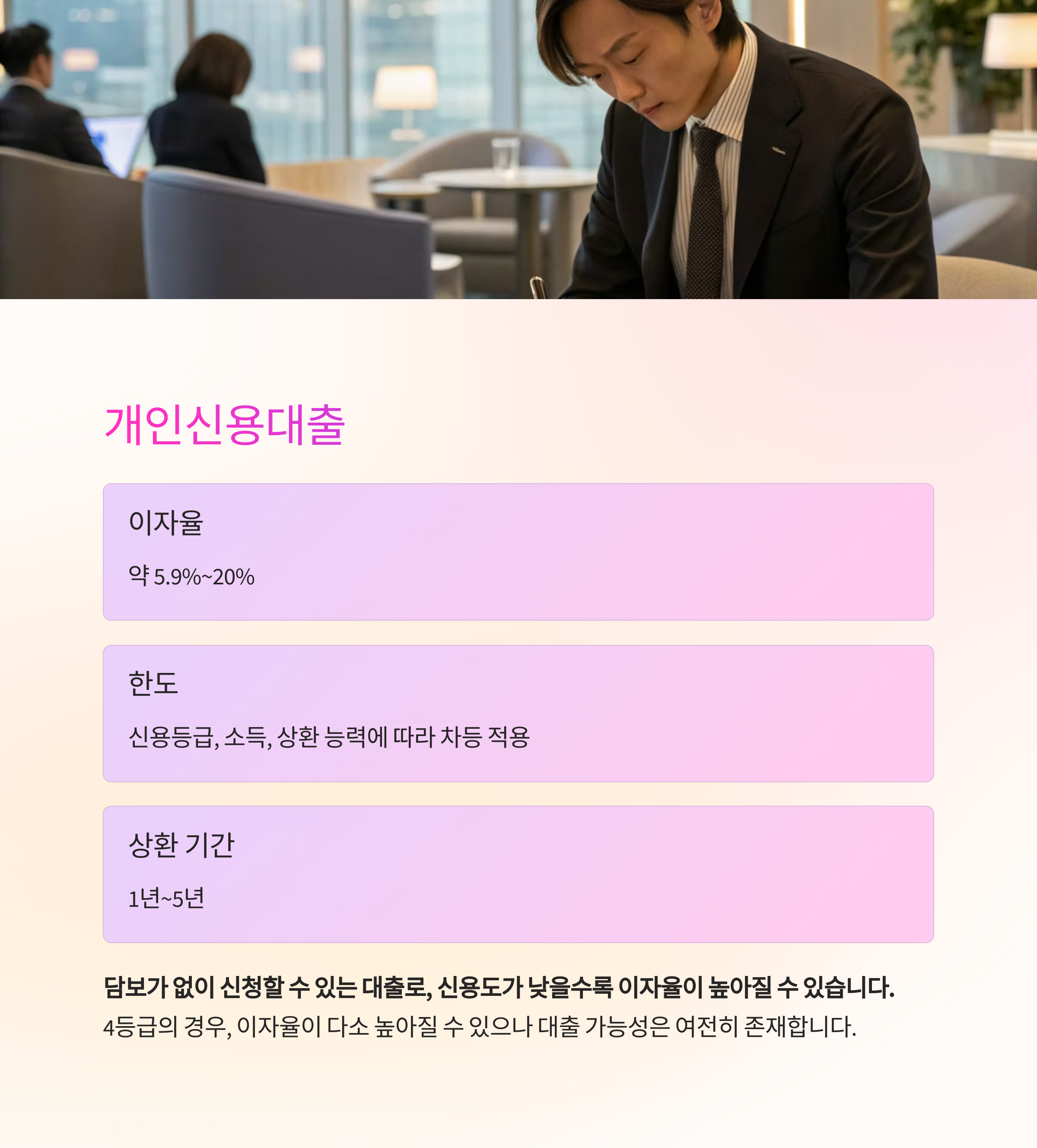 여기서는 4등급 신용을 고려한 주요 대출 상품을 정리했습니다.