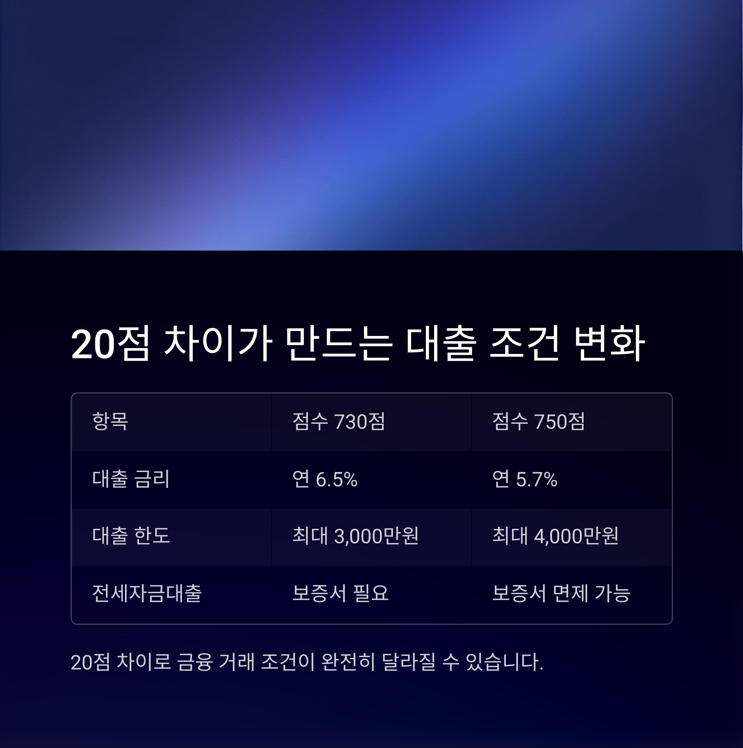 이처럼 20점 차이로 금융 거래 조건이 완전히 달라질 수 있기 때문에,