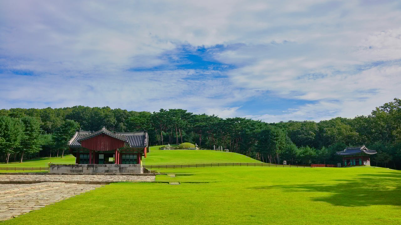 이제 오전 9시, 세종대왕릉으로 이동해 볼까요? 세종대왕릉, 즉 영릉은 조선시대 제4대 왕 세종대왕과 소헌왕후의 합장릉입니다. 이곳은 조선왕릉 중 처음 만들어진 합장릉으로, 봉분이 하나이고 혼이 머무는 혼유석이 두 개 있습니다. 세종대왕은 처음에 서울 헌릉 서쪽에 묻혔지만, 19년 후에 여주로 옮겨졌습니다. 이곳은 지관들이 명당을 찾아 선택한 곳으로, 산허리에 자리 잡고 북성산이 보이는 아름다운 풍경을 자랑합니다.