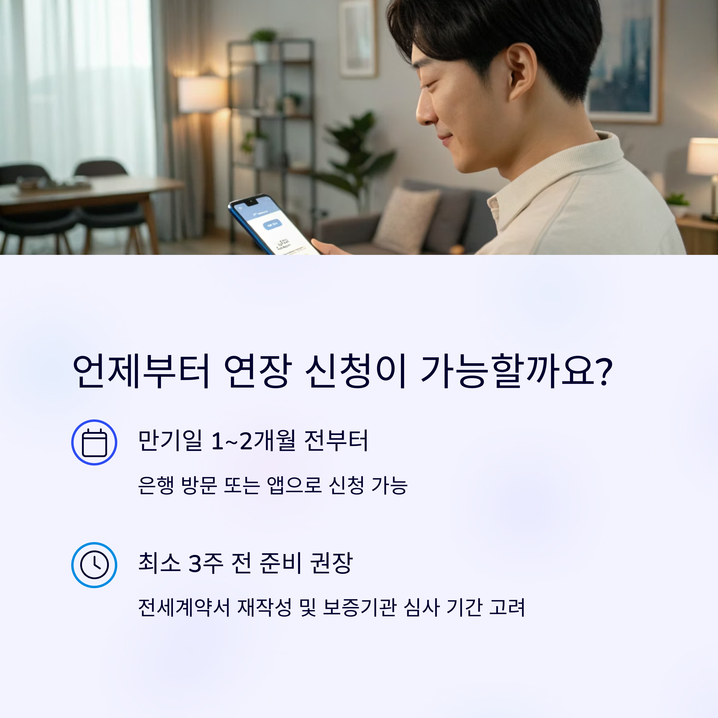 보통 만기일 1~2개월 전부터 은행 방문 또는 앱을 통해 연장 신청이 가능합니다.