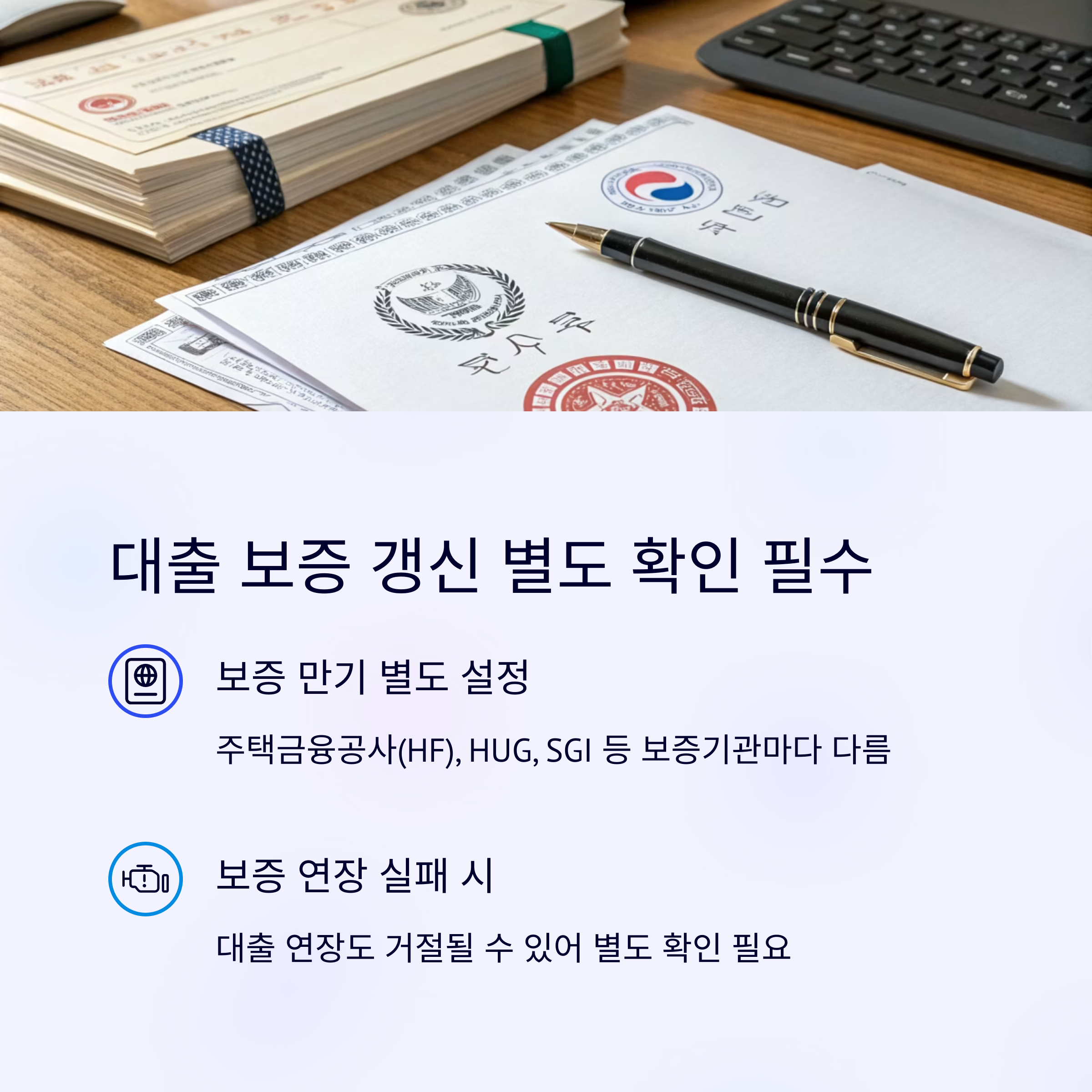 보증 만기가 따로 설정되어 있을 수 있으며, 대출 연장과 무관하게 만기 도래할 수 있습니다.