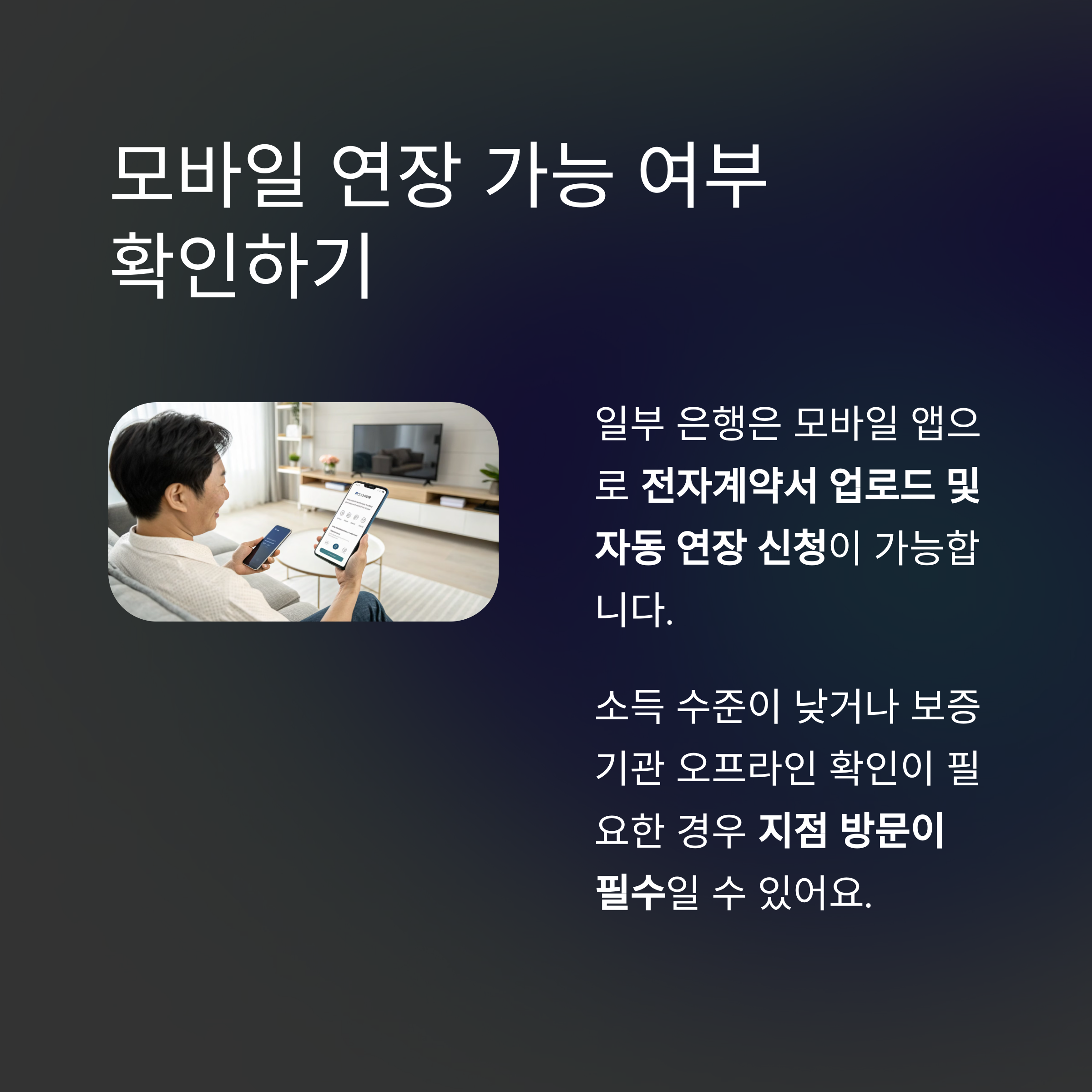 일부 은행은 모바일 앱을 통해 전자계약서 업로드 및 자동 연장 신청이 가능합니다.