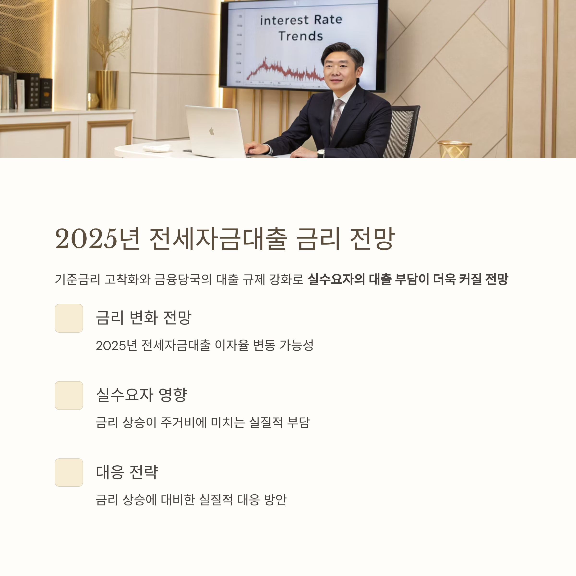 2025년 부동산 시장의 주요 변수 중 하나는 바로 전세자금대출 금리의 향방입니다.