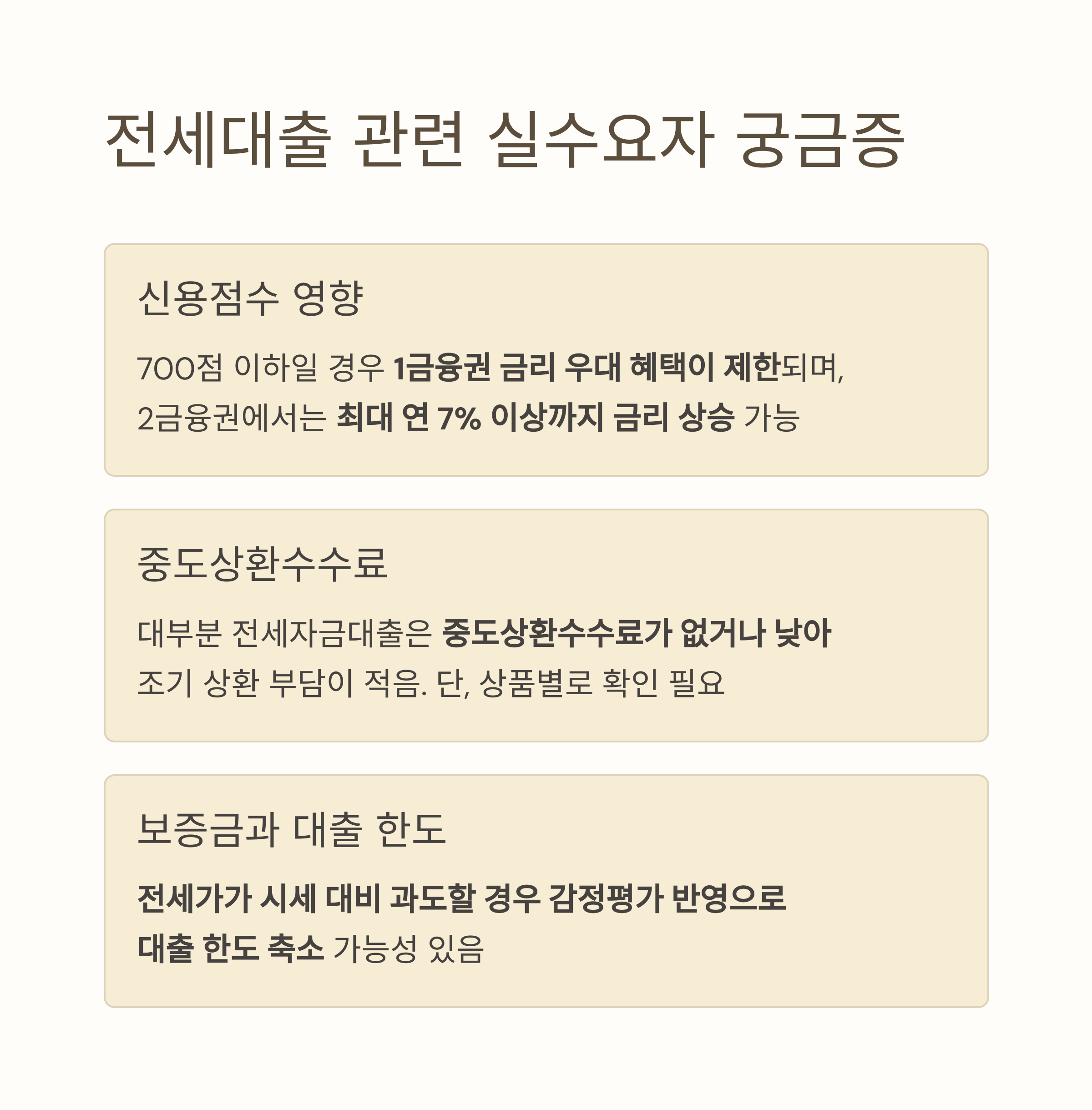 A: 대부분 전세자금대출은 중도상환수수료가 없거나 낮아 조기 상환 부담이 적습니다.