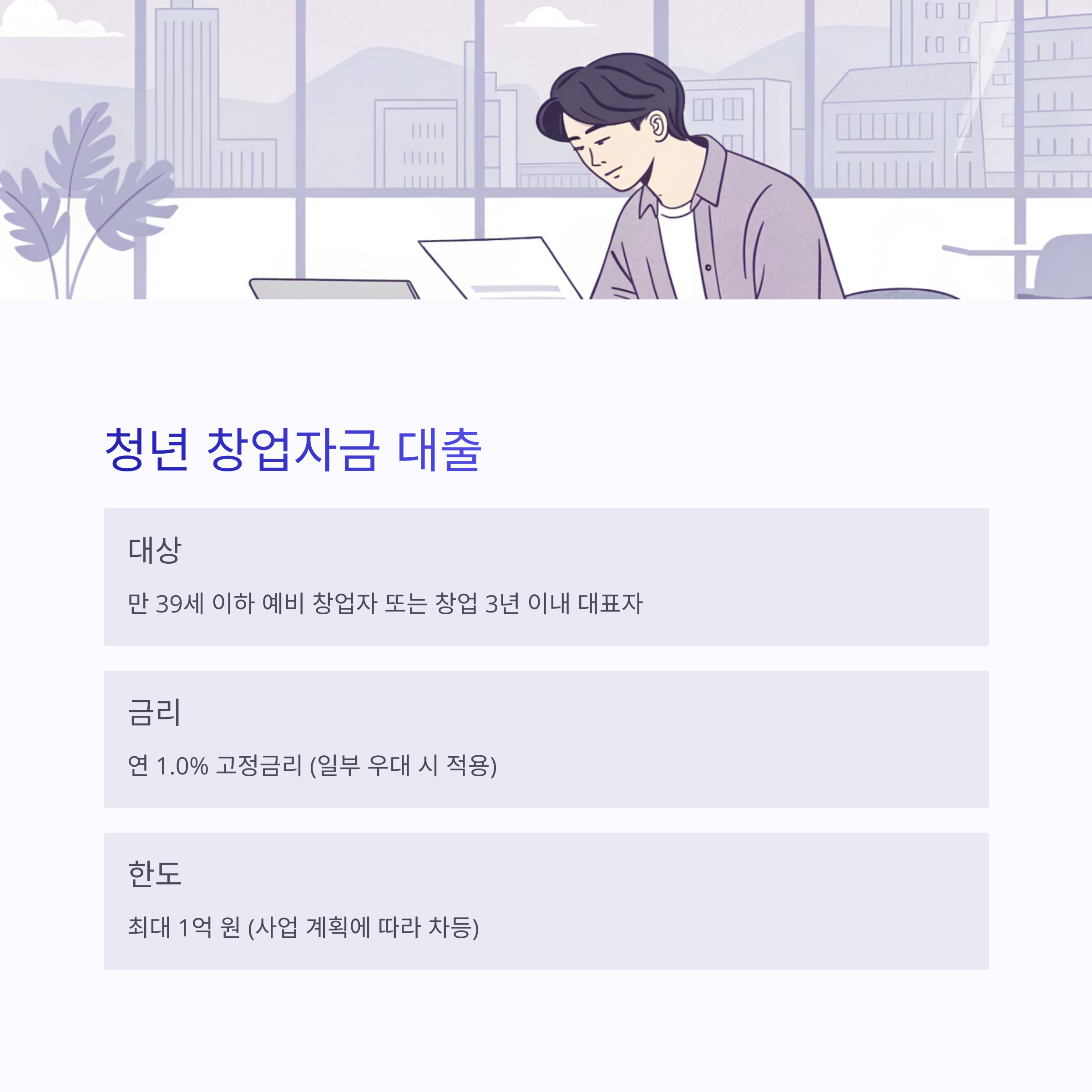 | 대상 | 만 39세 이하 예비 창업자 또는 창업 3년 이내 대표자 |