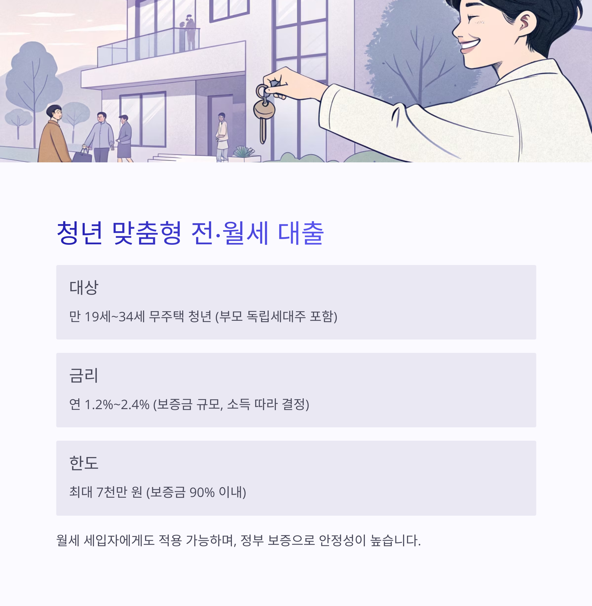 | 대상 | 만 19세~34세 무주택 청년 (부모 독립세대주 포함) |