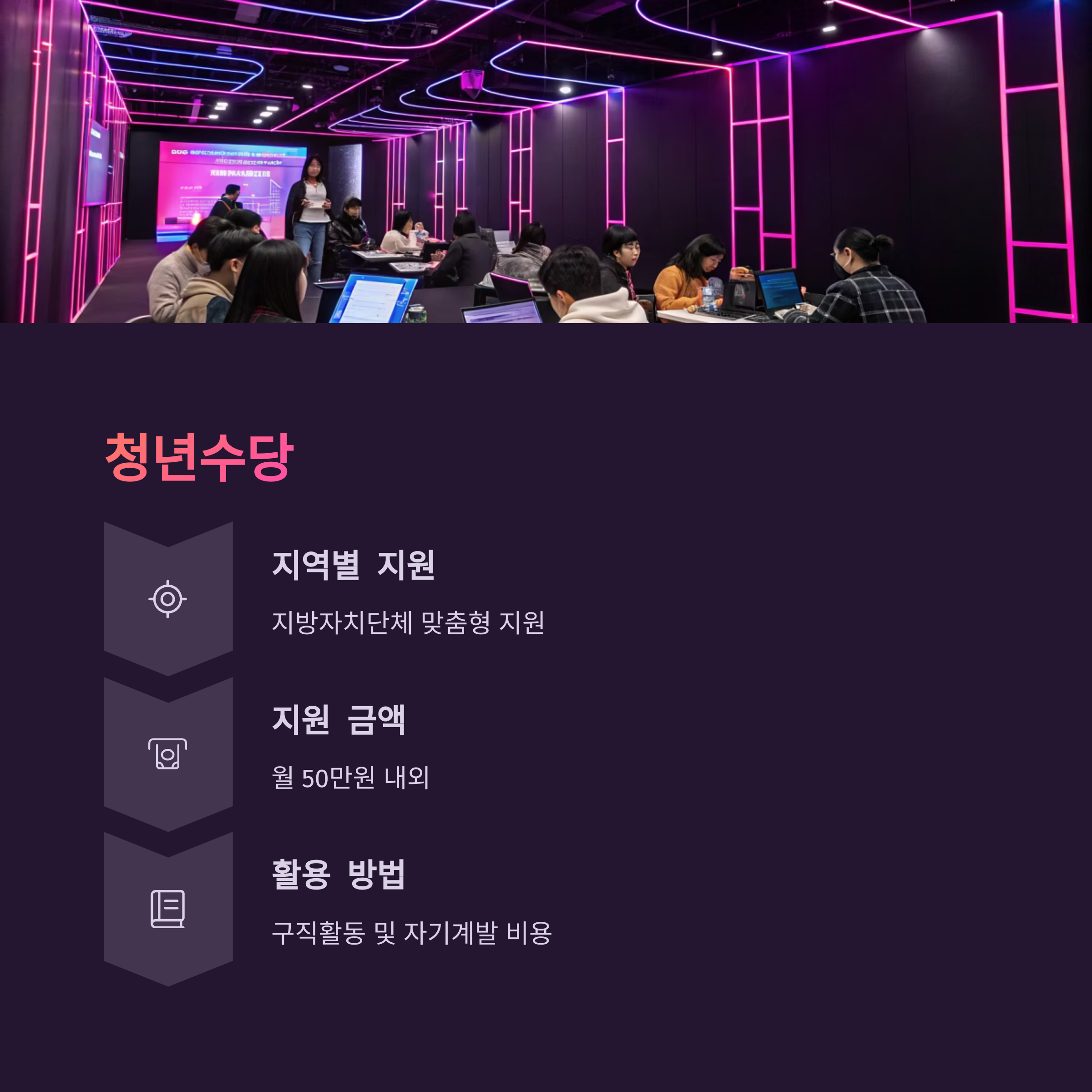 일부 지방자치단체에서는 청년수당을 통해 지역 청년들에게 월 50만 원 내외의 지원금을 지급하고 있습니다. 이러한 수당은 주로 구직활동이나 자기계발을 위한 비용으로 활용할 수 있으며, 각 지자체의 정책에 따라 지원 조건과 금액이 다를 수 있습니다. 자세한 내용은 해당 지자체의 청년정책 홈페이지를 통해 확인하시기 바랍니다.